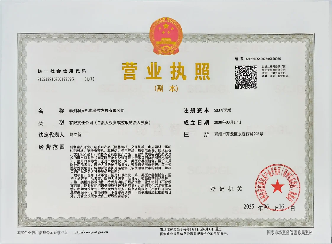 Registered address : No. 298 Yong Ding West Road Taizhou Jiangsu China